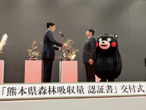 2025年11月16日、熊本城ホール展示ホールAにて「くまもと森林フェスティバル」が開催され、令和6年度分の「熊本県森林吸収量認証書」が交付されました。