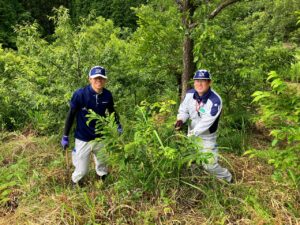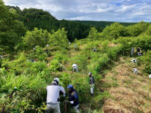 7月12日(土)に2022年11月と2023年12月に植林を行った熊本県阿蘇郡西原村の造林地にて、下草刈りのボランティア活動を実施しました。